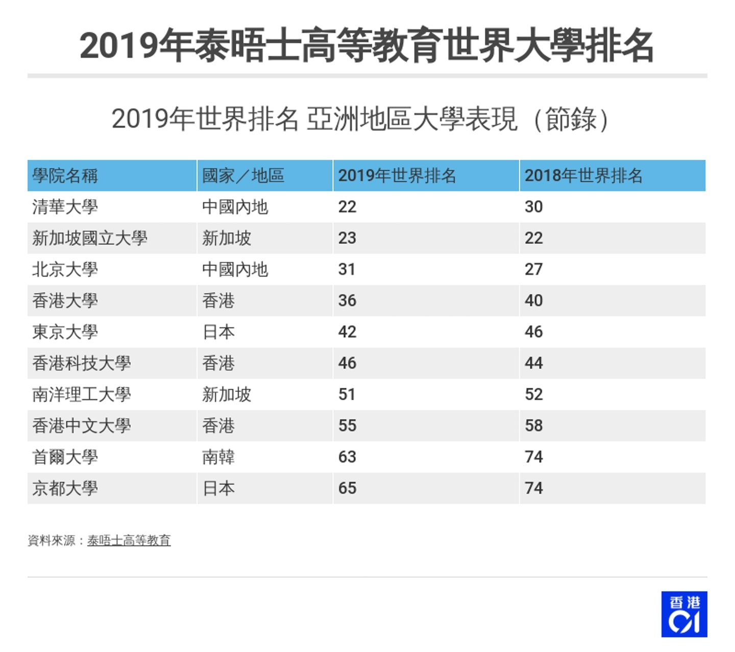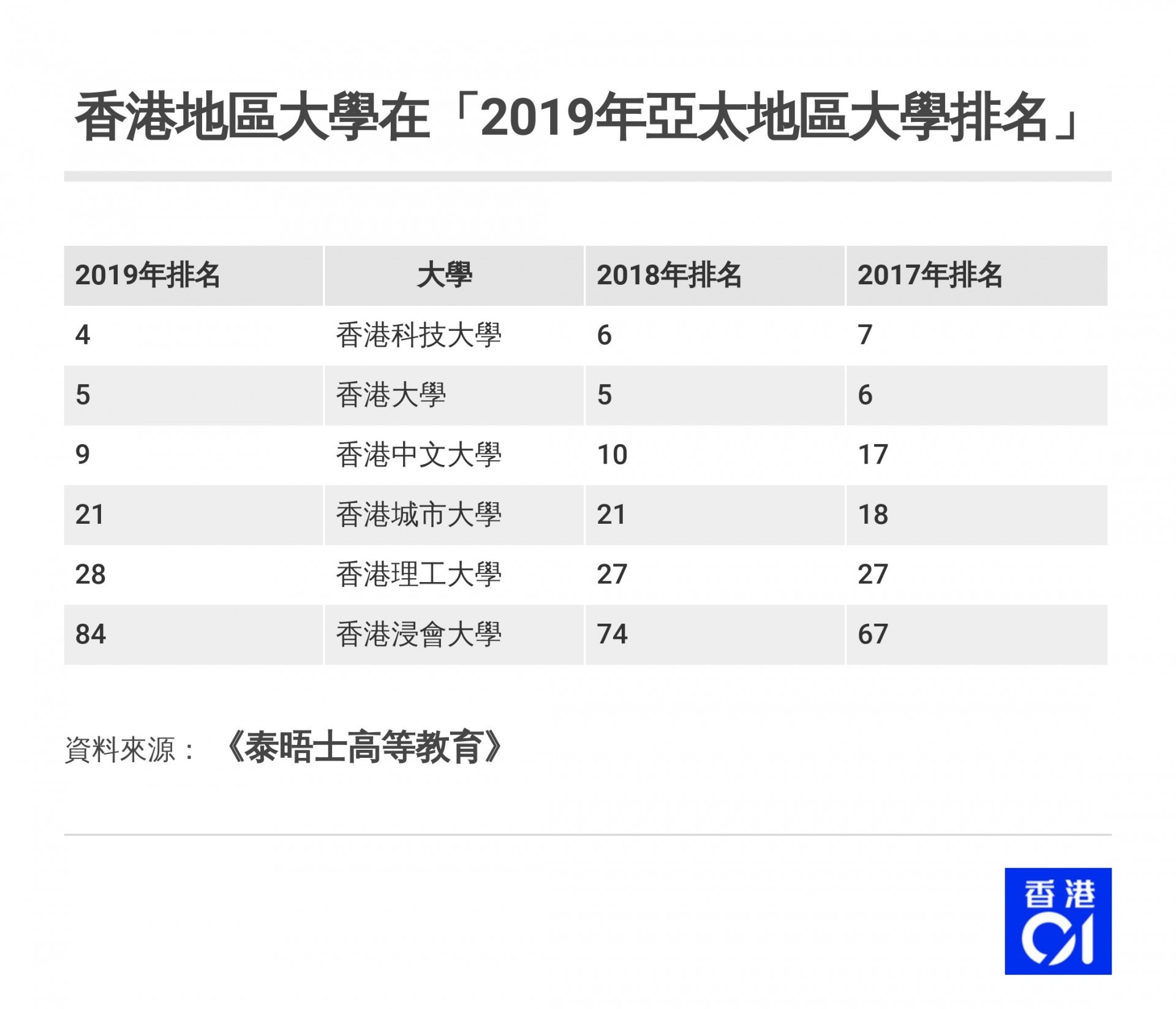 大学排名香港