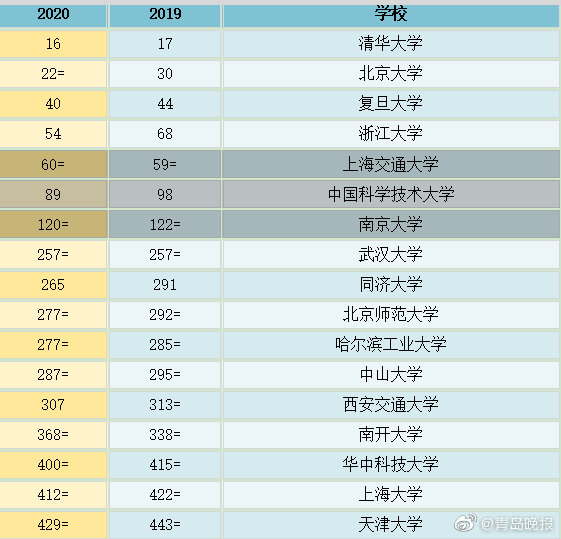 2020中国大学排名 Qs全球大学排行榜