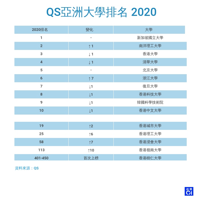 大学排名2020 香港