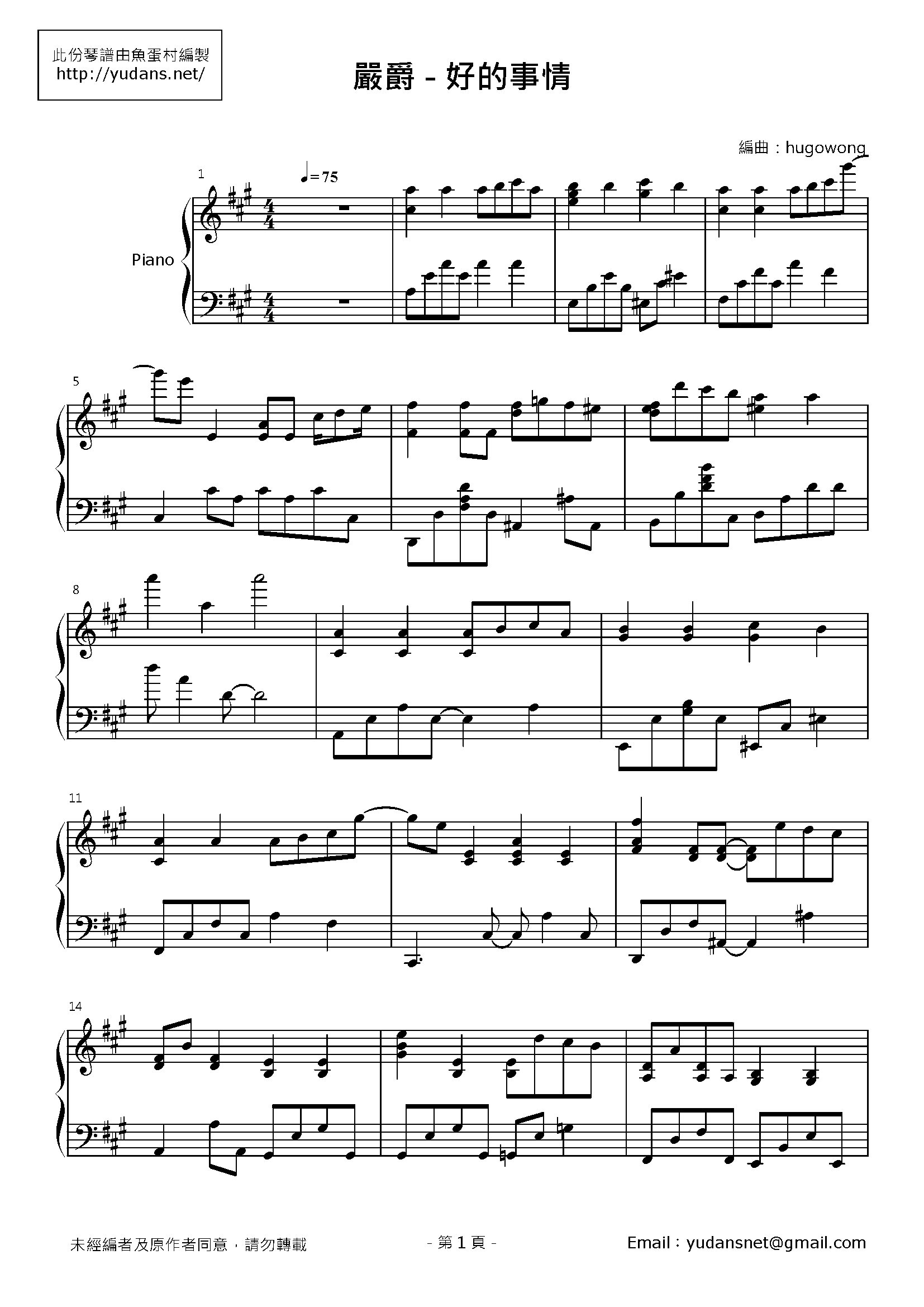 好的事情 鋼琴譜