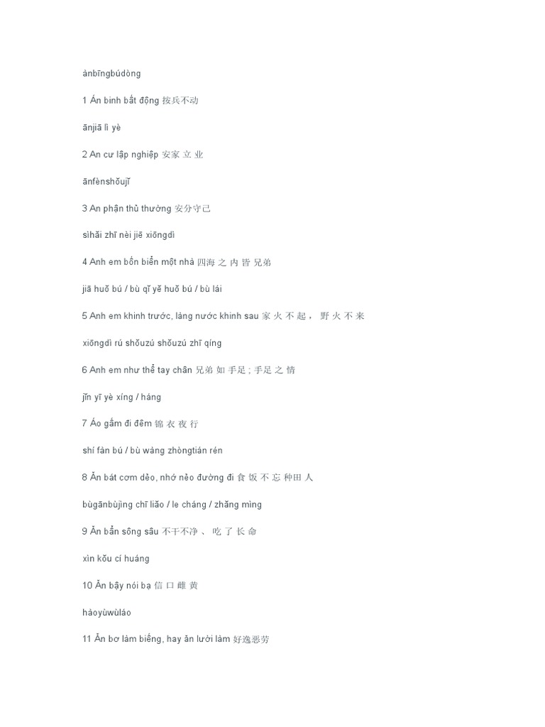 100 Cau Thanh Ngữ Tiếng Trung Hay Nhất