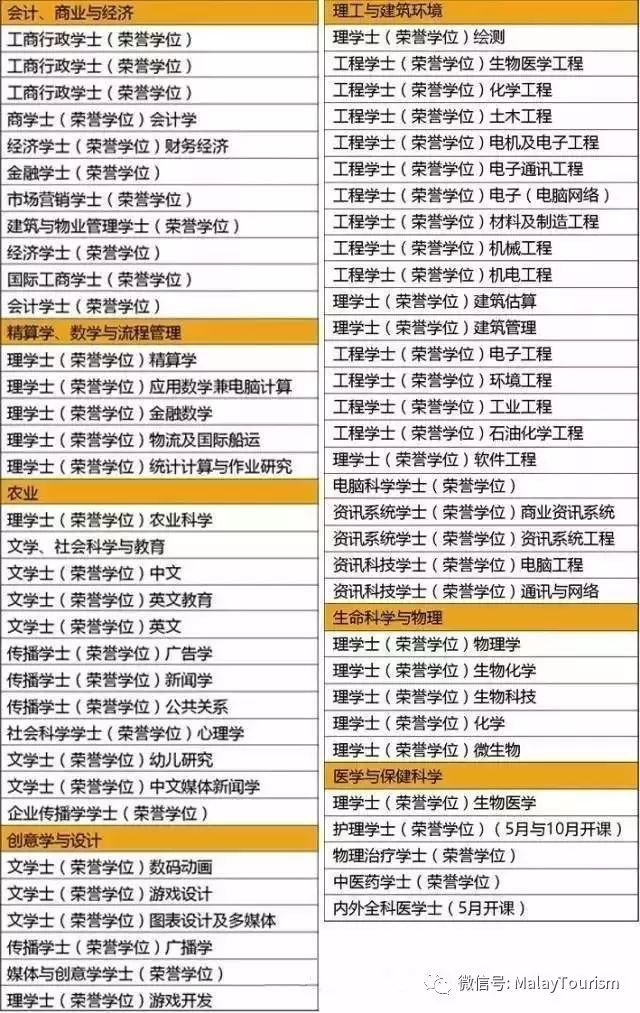 拉曼大學科系