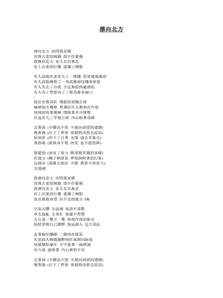 漂向北方歌词意思