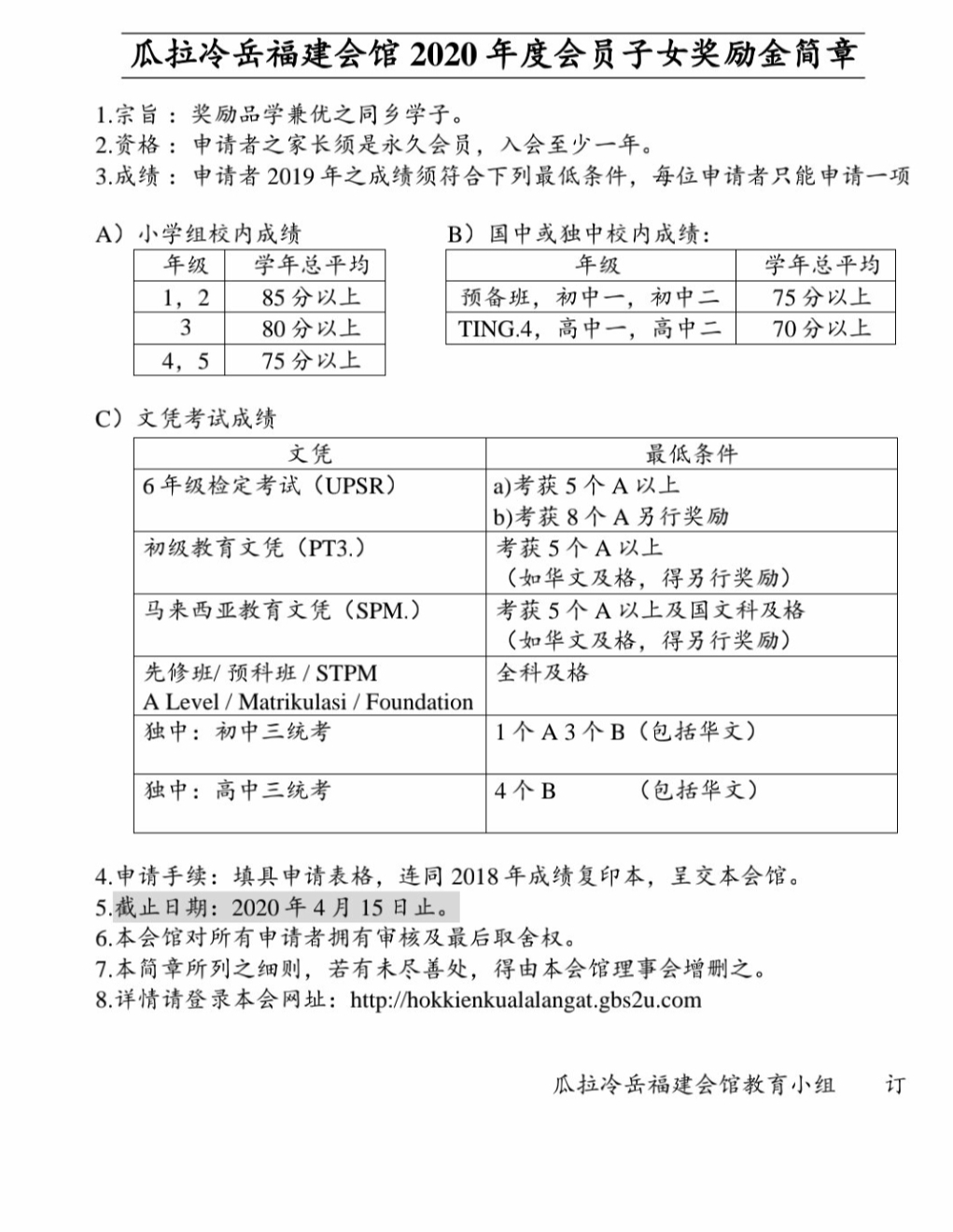 福建会馆奖学金2020