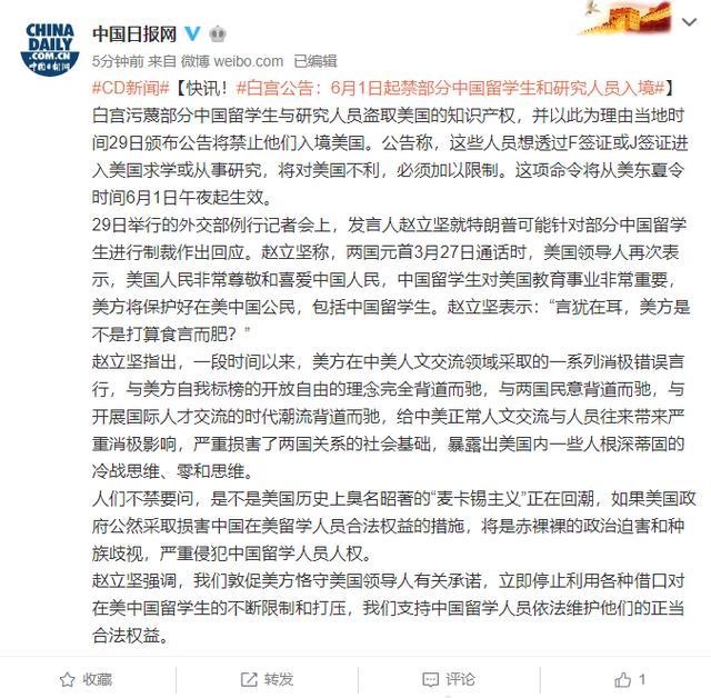美国中国留学生禁令