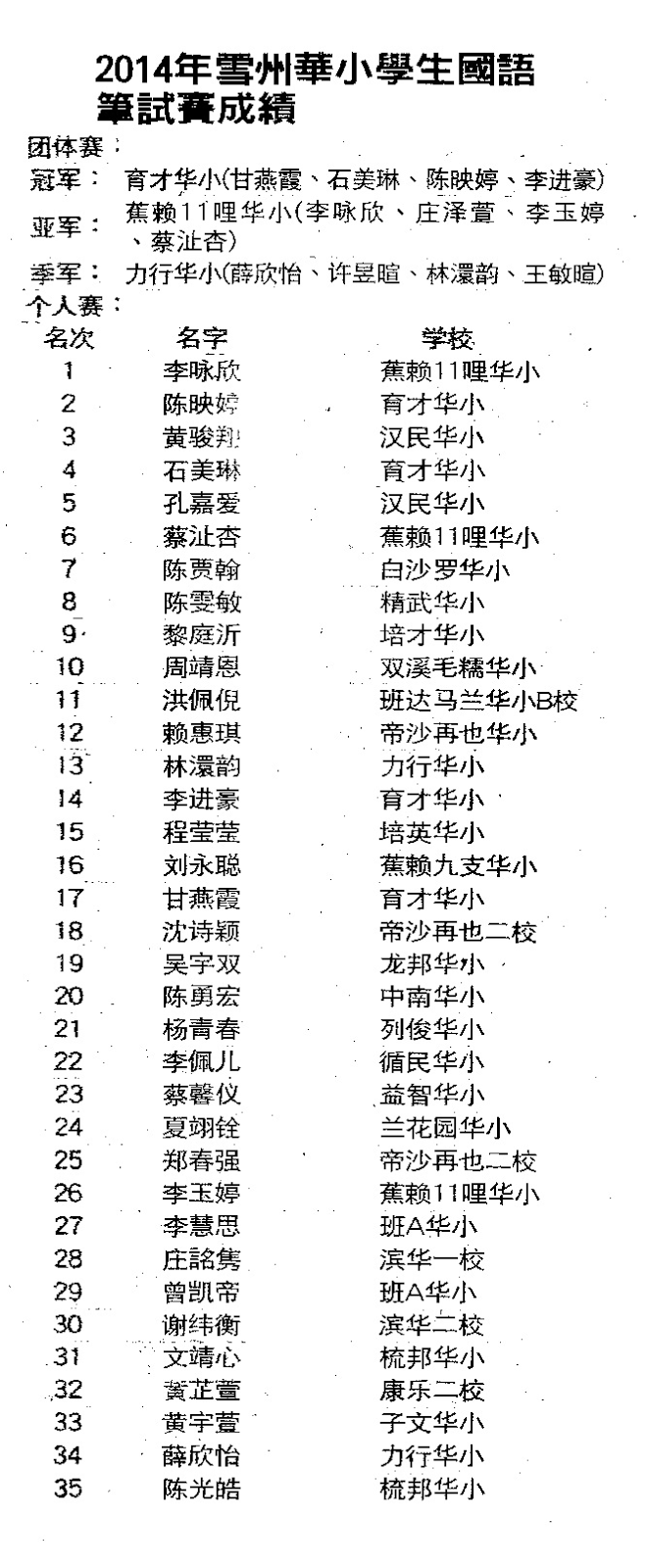 Connaught2 2014年雪州华小学生国语笔试赛成绩