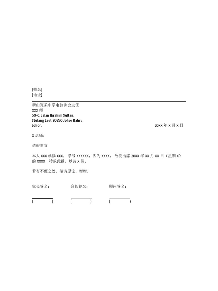 请假公函马来西亚