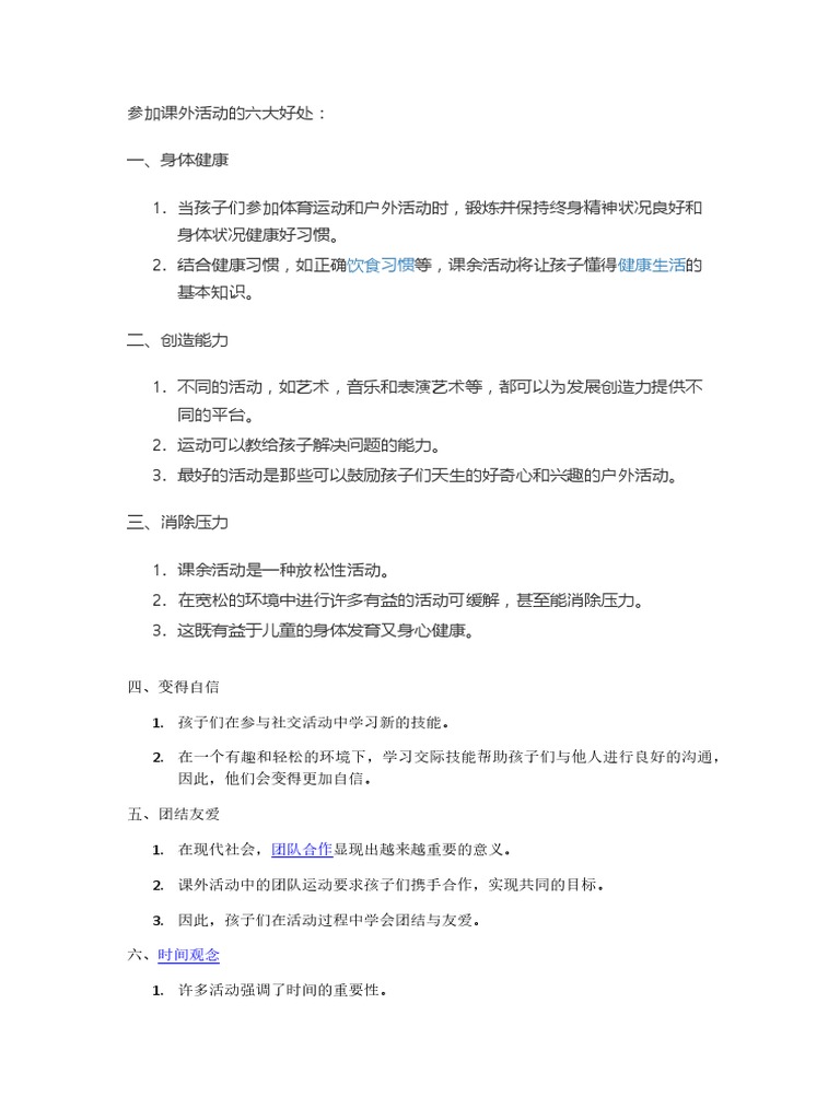 课外活动的好处口试