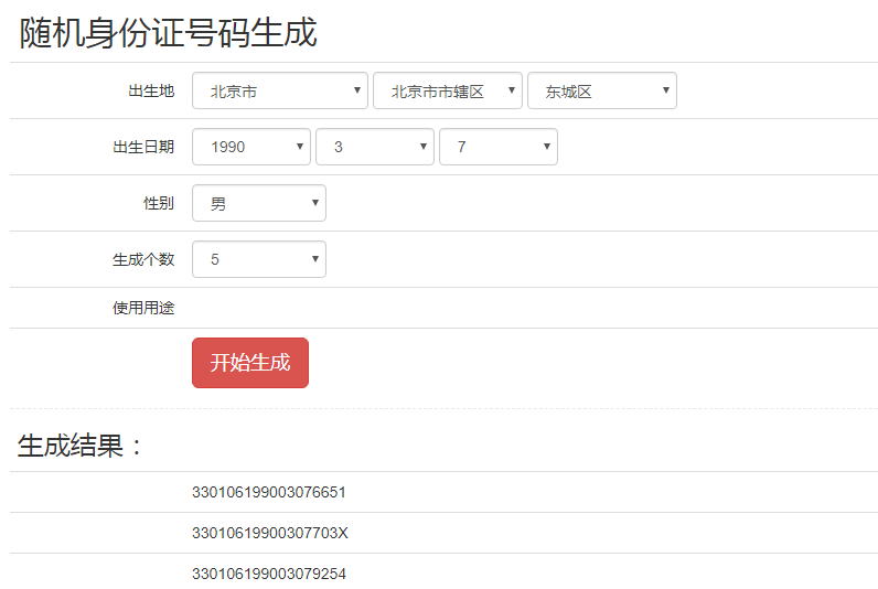 身份证号码生成器 姓名