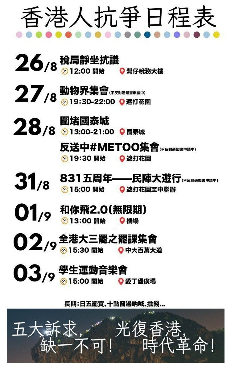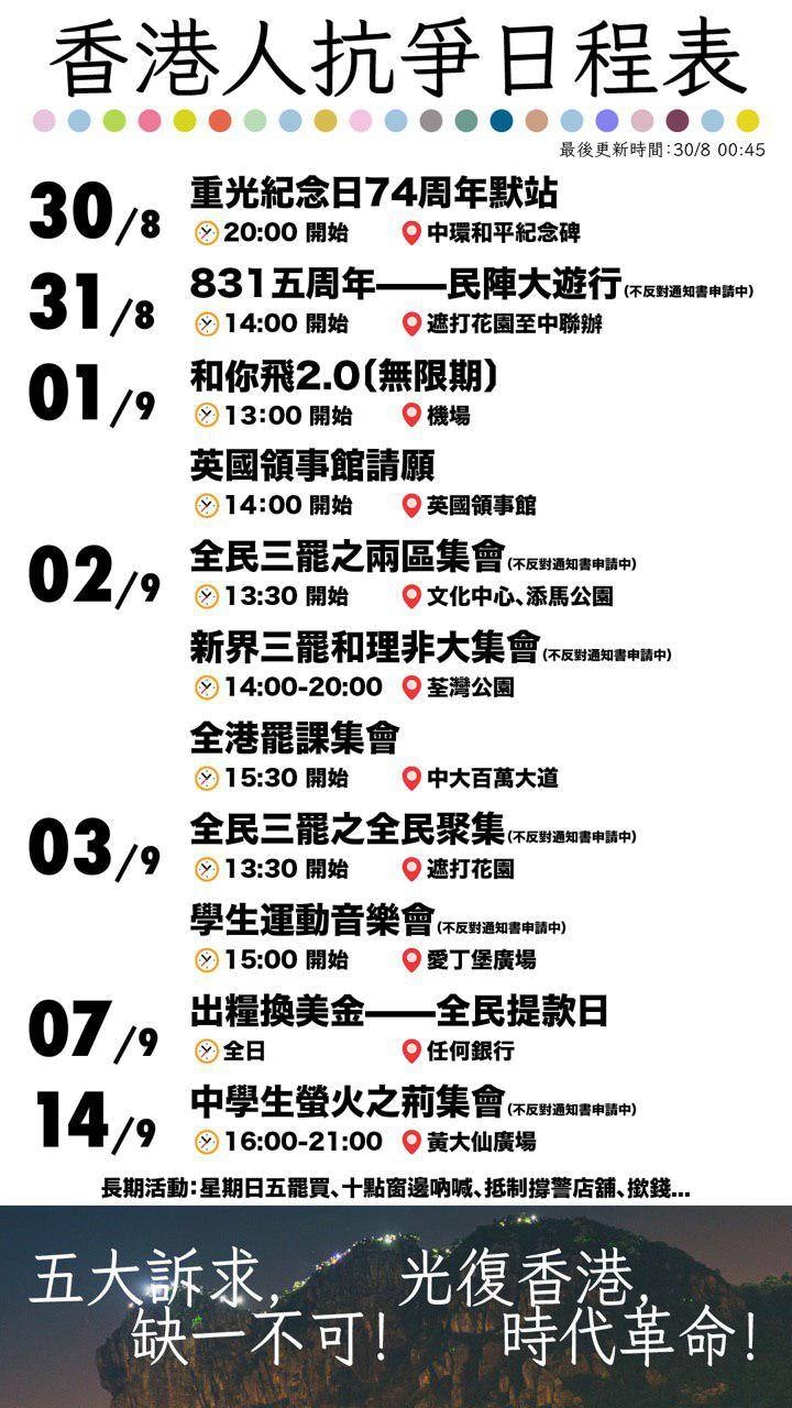 香港游行示威时间表