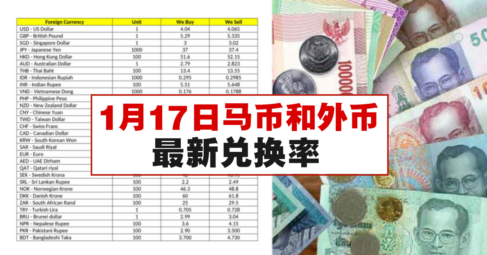 1月17日马币和外币最新兑换率 Winrayland