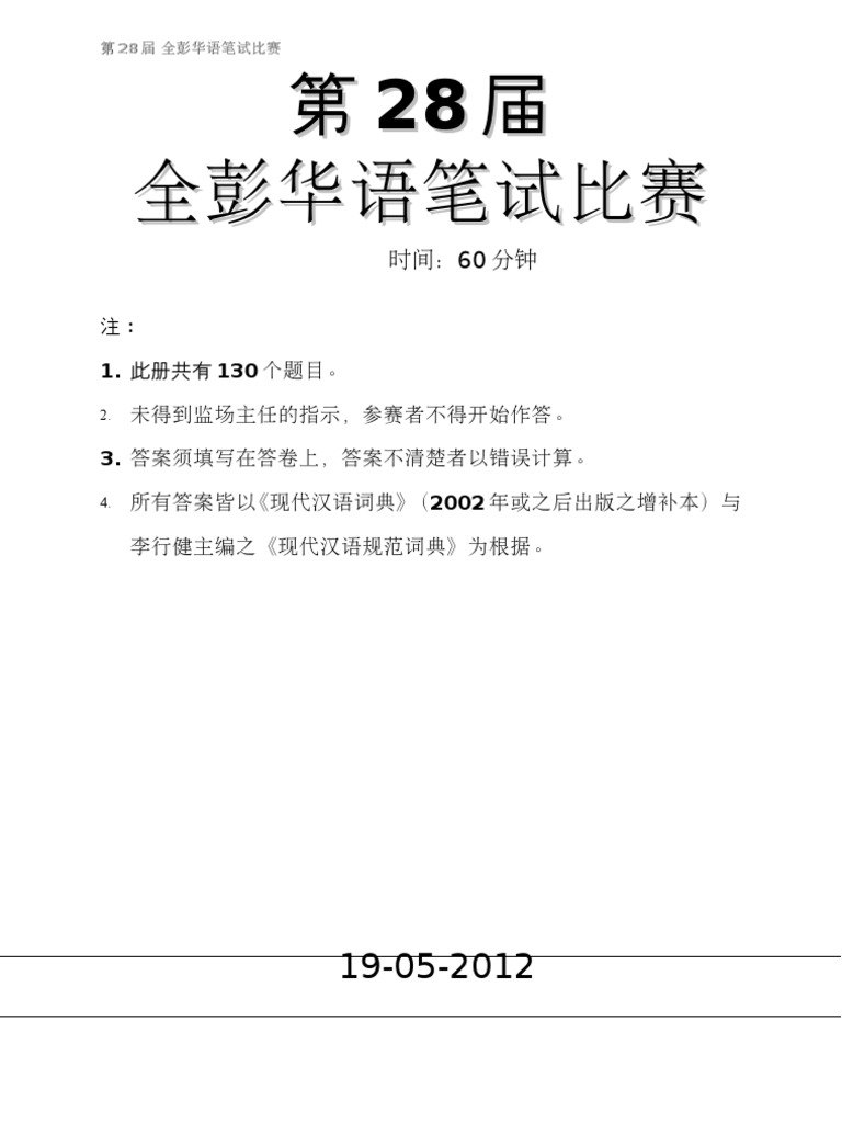 2017年霹雳州华小华语笔试比赛试题