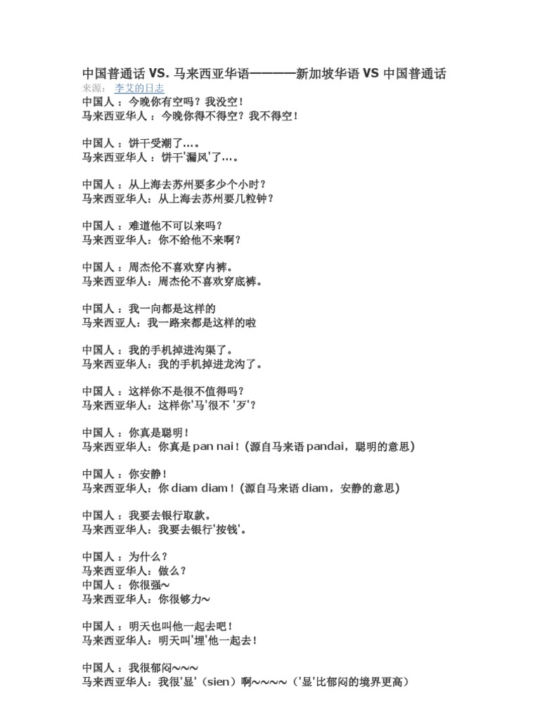 马来西亚华语和中国普通话