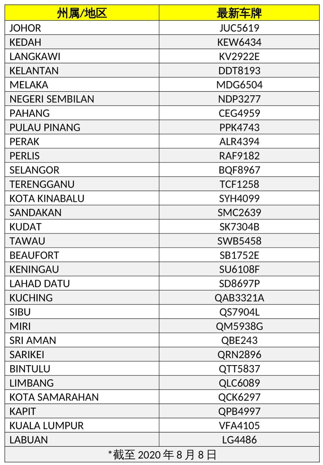 马来西亚车牌字母2020