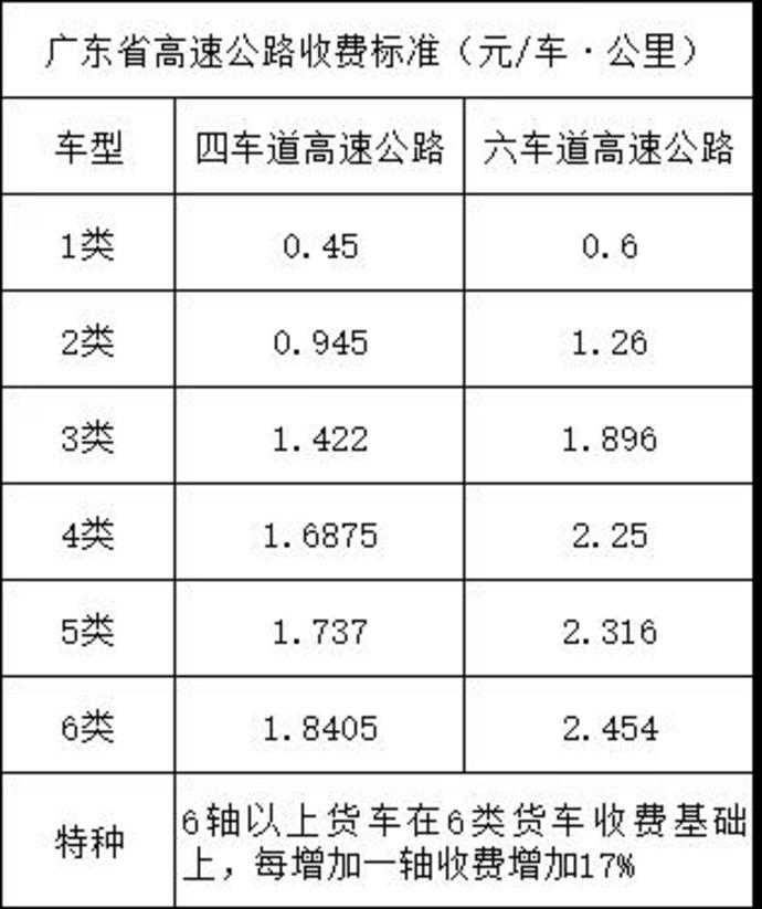 高速公路收费标准