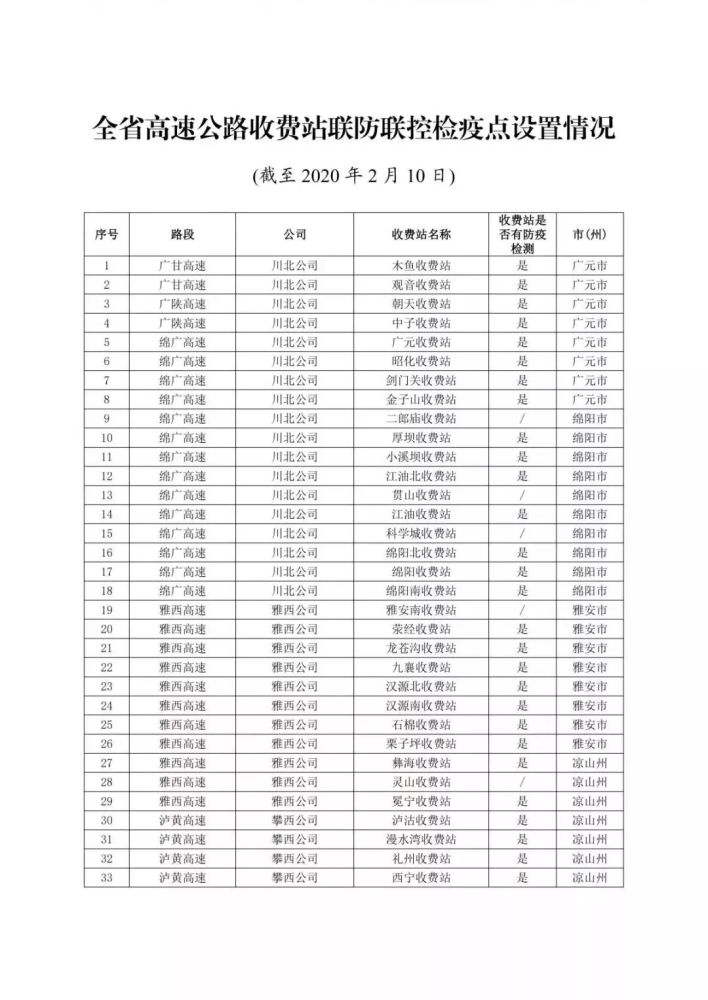 高速公路收费站一览表